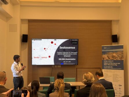 Sestosenso is a Horizon Europe – Research and Innovation project developing technologies for next generations of collaborative robots capable of self-adapting to different time-varying operational conditions and when human intervention is required either for collaboration or training. The presentation focused on the manufacturing use case, where the worker wears a sensorized exo-skeleton during an assembly task for proximity detection and ergonomic analysis.