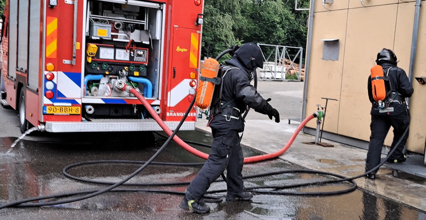 Firefighters entering building to extinguish fire at Twente Safety Campus